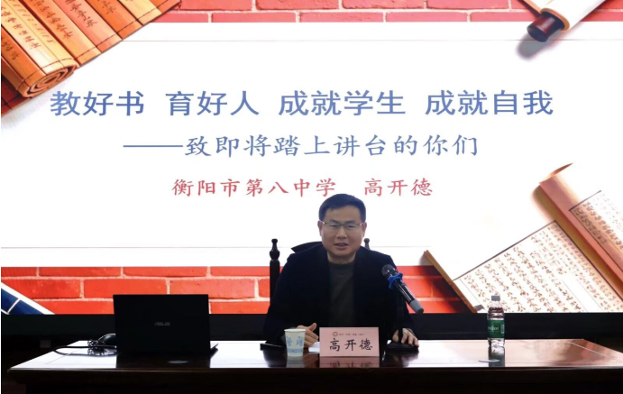 高开德以“教好书,育好人,成就学生,成就自我”为讲座主题,从融入校园文化、深耕教学技能、做好班主任工作三个方面,系统讲解历史教师成长路径;并建议大家在听课、备课、上课等教学环节中提升教学能力,用耐心与责任心陪伴学生成长,做好家校协同育人工作。