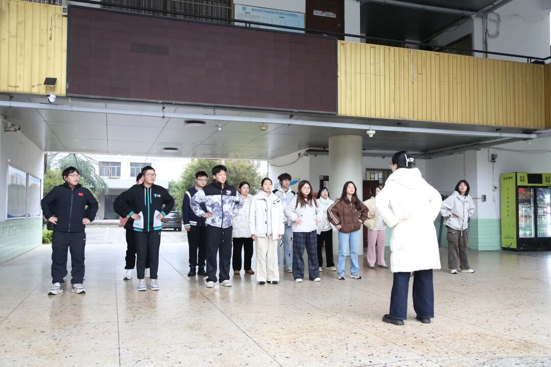 活动伊始,刘徽化身“运动导师”,带领大家进行趣味热身——压腿、扩胸、踝关节活动……从略显拘谨到逐渐舒展放松,同学们在整齐的动作中唤醒身体,现场氛围也随着拉伸节奏逐步升温,为接下来的趣味体验做足准备。