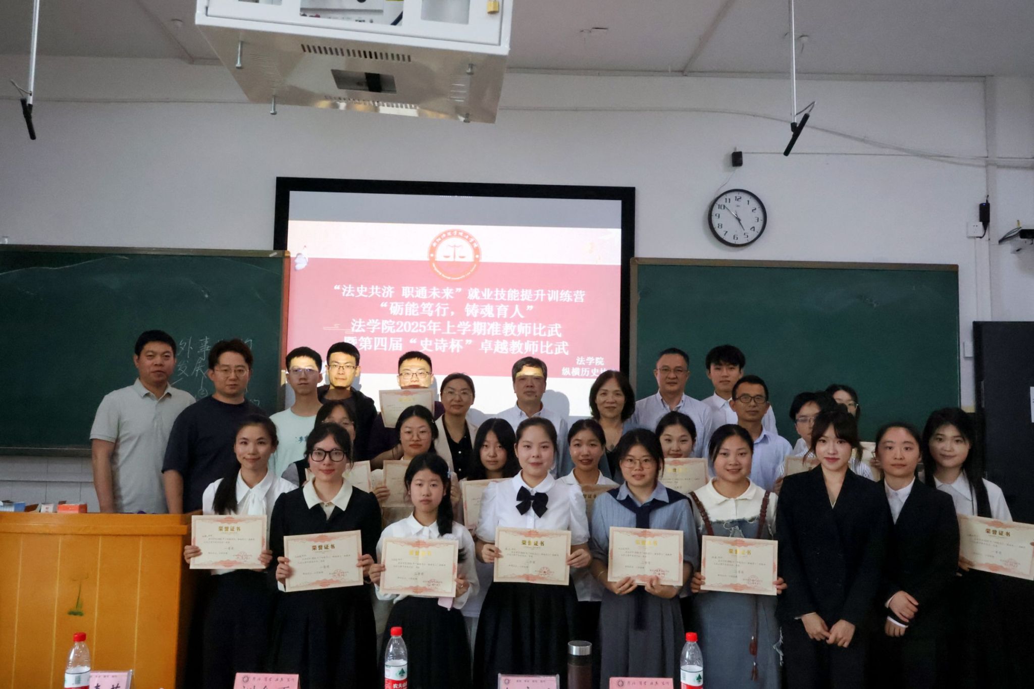 4.准教师比武大赛 | 砺能笃行,铸魂育人。5月7日,我院于仁智楼B502和B311教室举办“砺能笃行,铸魂育人”准教师比武大赛。学院党总支书记杨家骏、院长刘余香、党总支副书记罗耒英、副院长罗文正及历史学专业教师郭继红、谢华等出席,比赛由罗斯尹、张婕主持,2022—2024级历史学专业部分学生参与比赛。本次活动以赛促学、以赛促练、以赛促教,有效提升历史学师范生的教学实践能力与专业素养,增强其从教信念与职业认同,为培养具备扎实教学技能、深厚育人情怀的历史教师队伍奠定坚实基础。