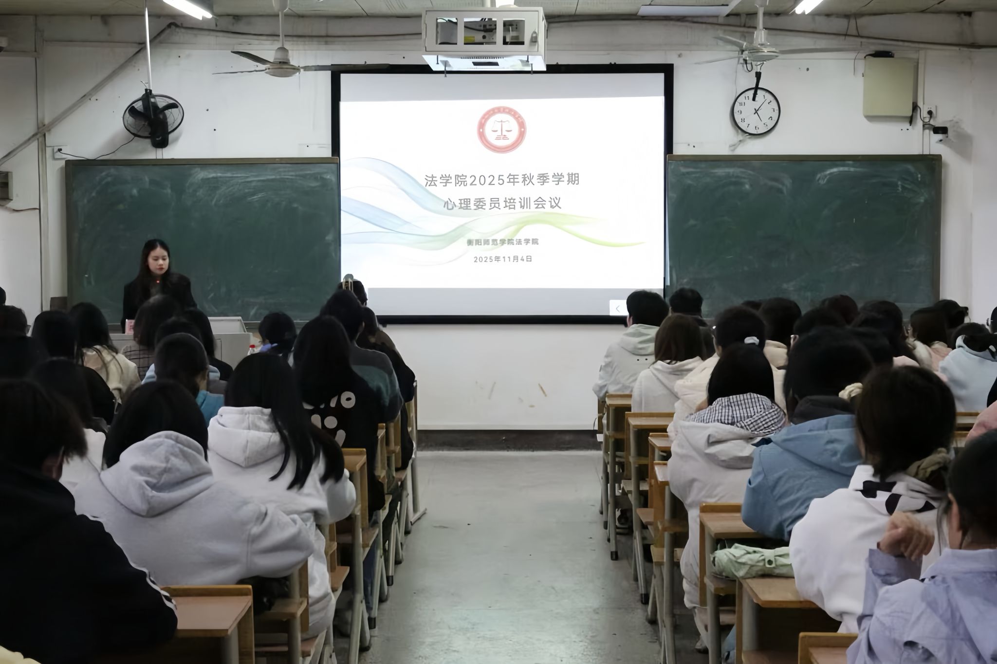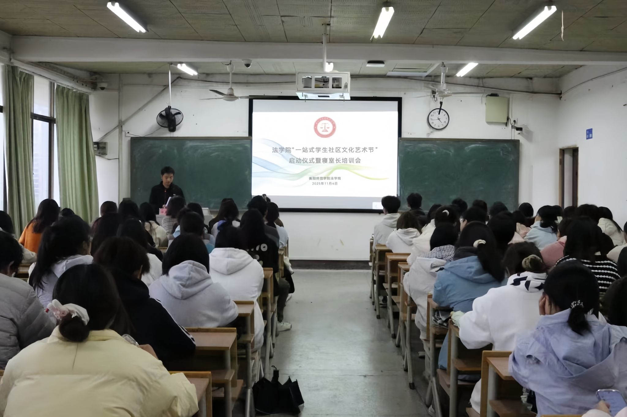 为筑牢宿舍安全防线、推进宿舍文化艺术节筹备工作。11月4日下午,我院于西校区明德楼601举行第三届“一站式”学生社区文化艺术节暨2025年“宿舍文化节”启动仪式与安全教育大会。我院党总支副书记罗耒英,辅导员蒋秋琼、任英杰、刘徽到会指导,2025级班团、生活委员、心理委员及寝室长参加此次会议。本次会议由刘徽主持。